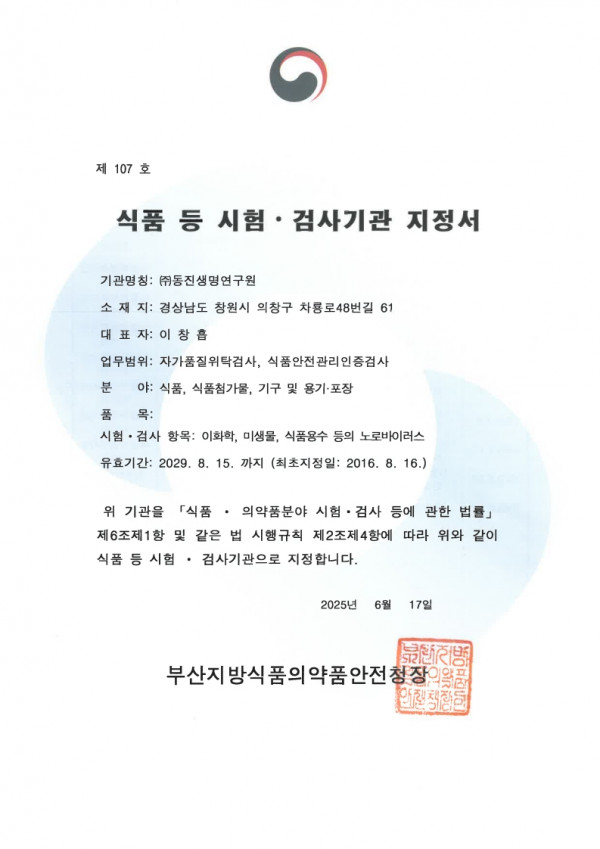 3. 기타 (주)동진생명연구원 가/이 인정하는 경미한 사항
