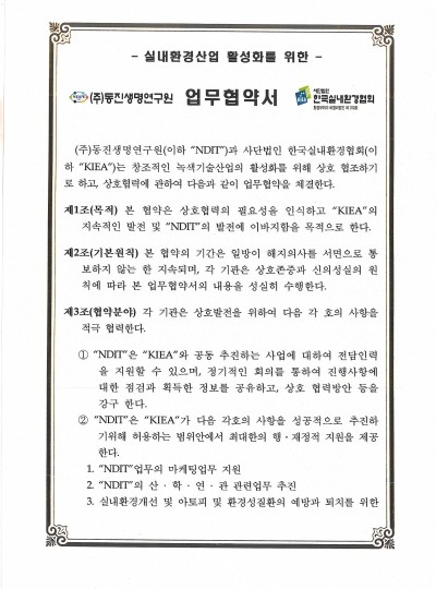 (사)한국실내환경협회 산학협정체결 -1- > 인증서 | (주)동진생명연구원
